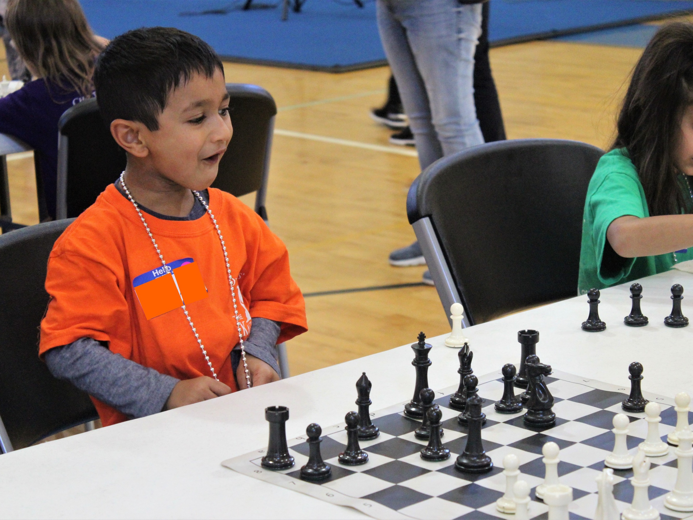 1) Our Chess Nuts kindergartners wear an orange shirt; The Knight School Elementary kids wear purple. That way there is no mistaking who needs the extra attention!